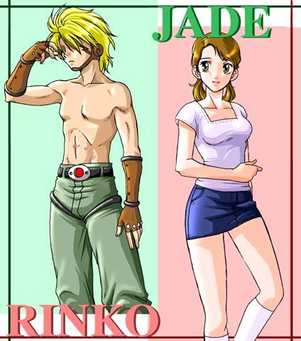 | 激しく個人的な感覚のお話なのだがジェイド君15歳と仮定して。 仮定と言うか希望なんだけど。とにかく15歳と仮定してです。 私の中で15歳だと、この位の体格。な訳です。イメージだけど。ええ。 で、凛子ちゃん高校生だよね、確か。年上なんだよね。って思って描いてみた。 そんな事してる場合じゃないのは分かってるんだけど。わはは。 でもアレか。日本人じゃない訳だし、もっと大人っぽいのかもしれない。 ドイツの15歳は。なんて事も思ってみる。まあ良いや。私日本人だし。 それにしても凛子。これでもかって位私の絵だ。うぬう。いやジェイドもだけど。 |