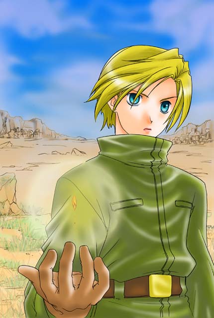 | 砂漠。マンマ。芸も何もあったもんじゃないタイトル。 昔は金髪とか、茶髪とかそういう普通の髪の色は あんまり塗らなかったなーとか思いつつ金髪に…。 基本的には目にハイライトとか入ってなくて、死んだ 魚みたいな目が大好きでございまして。ゾイドのね シュバ兄の目見て、ああ、昔からこういう目の処理 好きだったなーって。ザブングルのキャラとか、ララァ もプルもそんな理由で好きだった気がする。あんまり 描き込まれてない方が好きで。そんな感じにしたかっ たんだけど。挫折。似合わなかった。どうにも。ってか あの目の処理はアニメ塗りでないと栄えないのかも しれない。と、今思った。遅すぎ。わはははははー。 ちなみに髪に変な色塗りたくなって塗りなおした。 →こちらに置いてみたり。 |